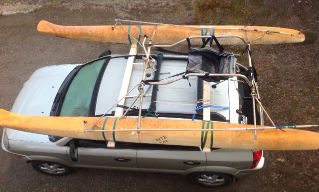 The biggest battle so far was getting it on my car - the cross bars on my roof rack are fairly close so I needed to make wooden extensions that would