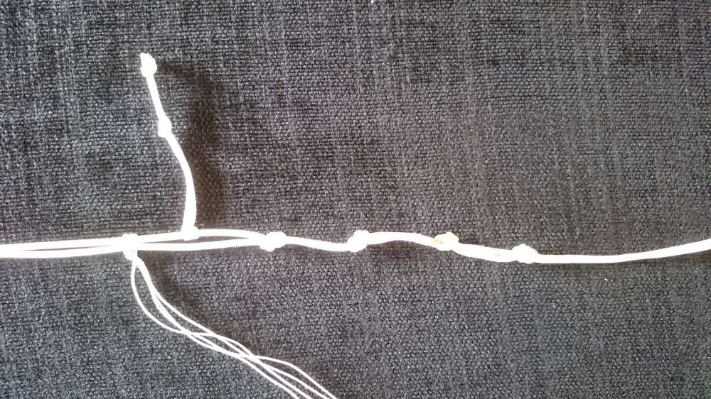 Pull out your lines and stake them to one point using a screwdriver. Make sure all four lines are the same length. Perhaps one or more is