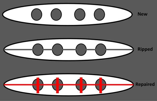 Note: For sewing repairs, be sure to use a good quality UV treated poly thread in either tex45 or tex70, do not use a cotton, nylon or woven thread