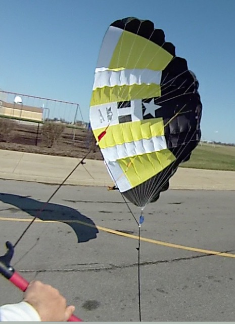 winds and gusts well - the green one was a bit twitchy - the ram air tube was easy to deflate. I need to get some practice on a longboard - it really