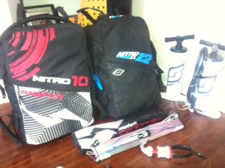 Both kites include backpack, patch kits, and random stickers