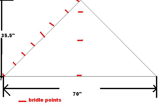 here is what the kite look like and the dim. and where the bridle is hooked up to the kite