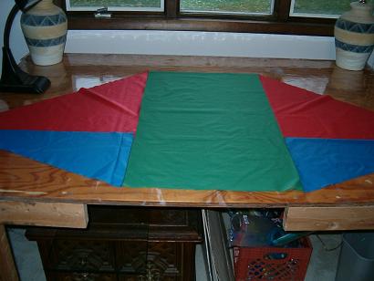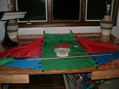 to hold the panels together and sew the leech line in the keel. Not the greatest job on that, but it will probably be stronger than taping the