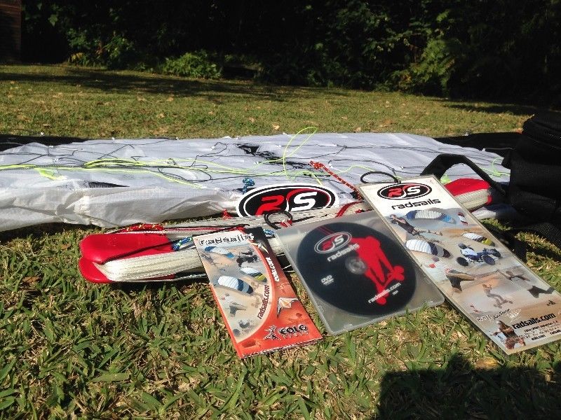 with original bag, lines, handles, DVD and even original sticker. Used once. Selling because I'm not using the kite. Excellent for buggies and some