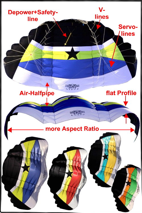 All the kites have color-matching carrying backpacks which measure 20"X 16"