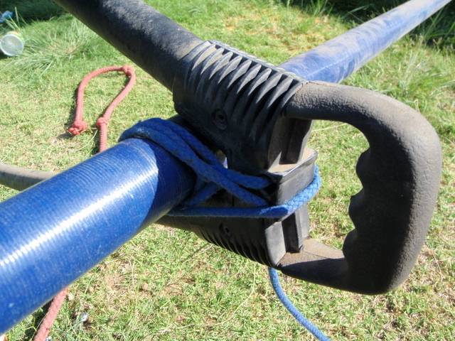 I remember my first windsurfer had to be tied to the mast - I'll see if I can dig up any info in some old windsurf books but I recall starting with