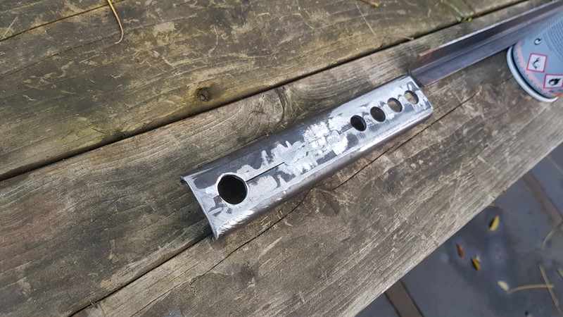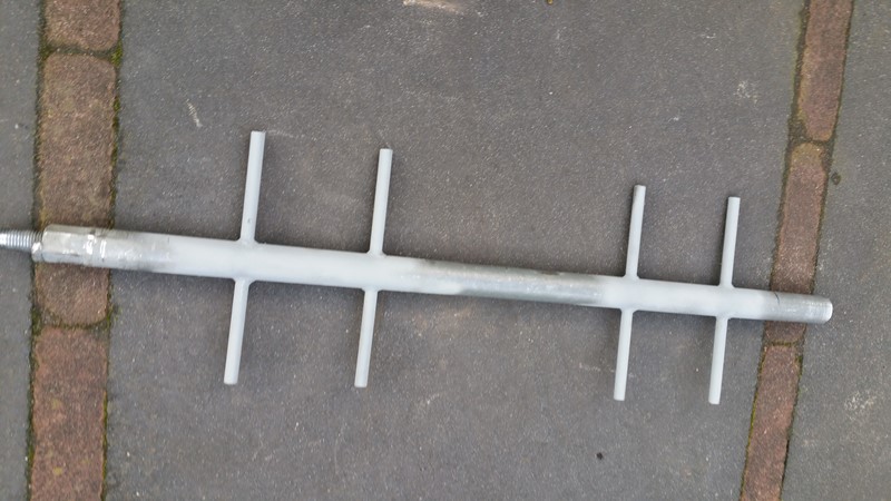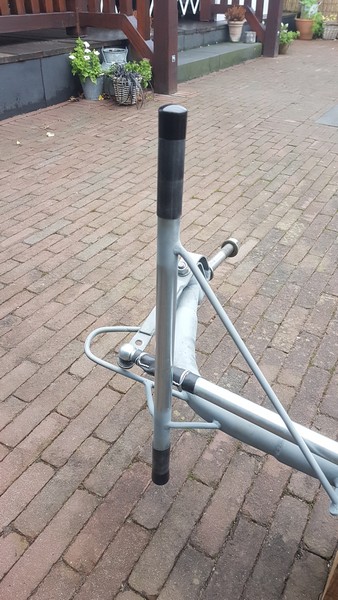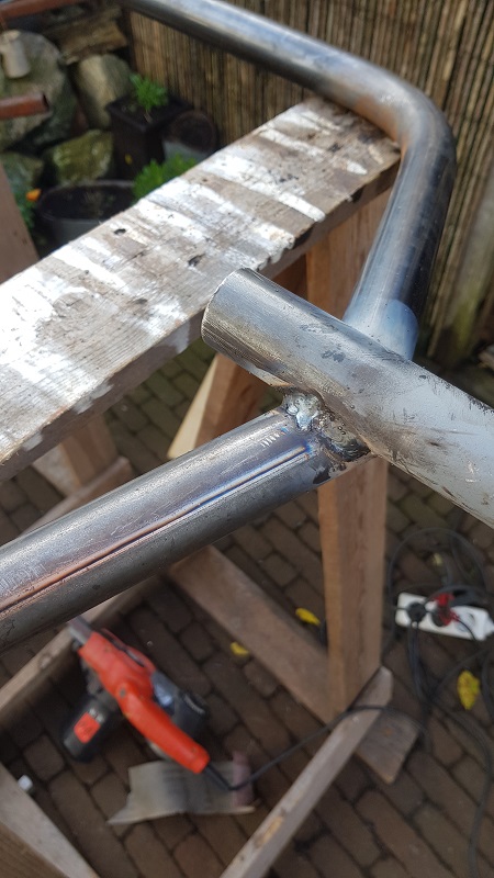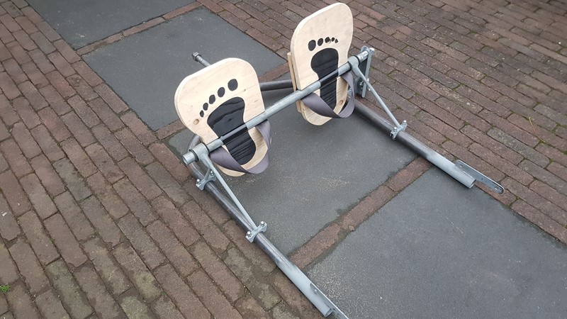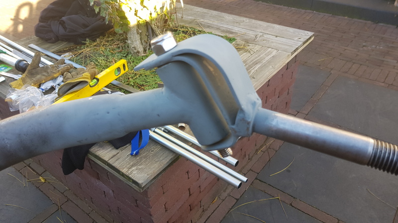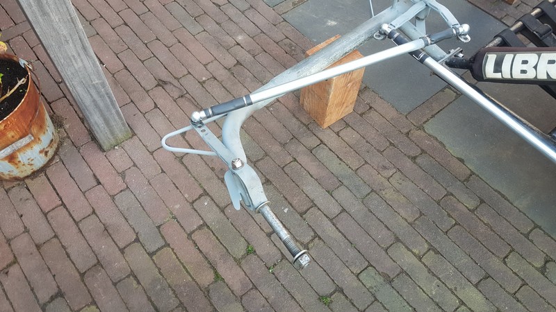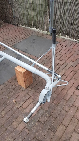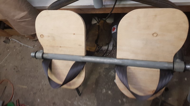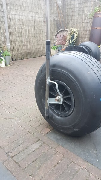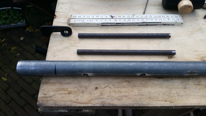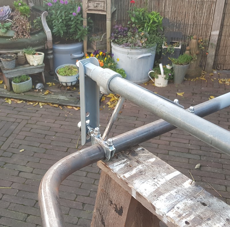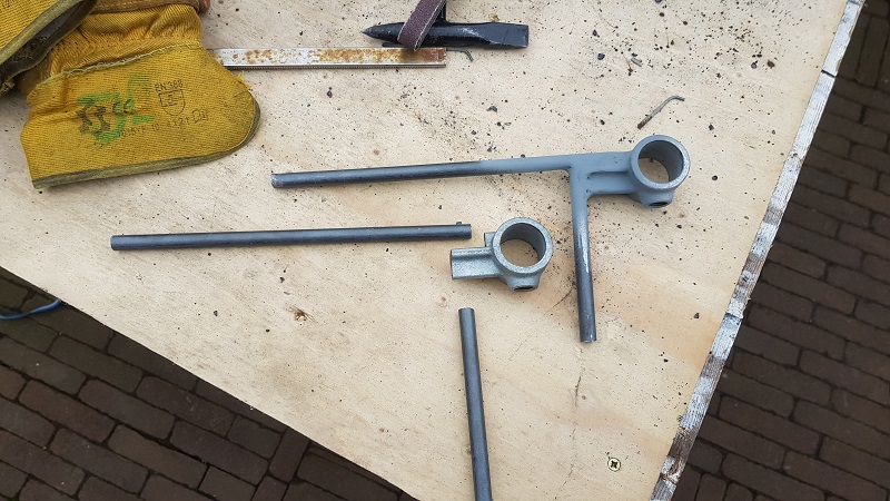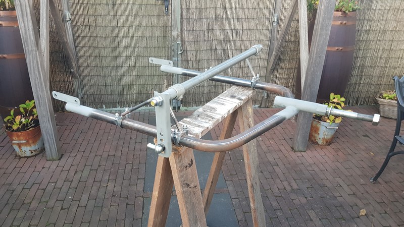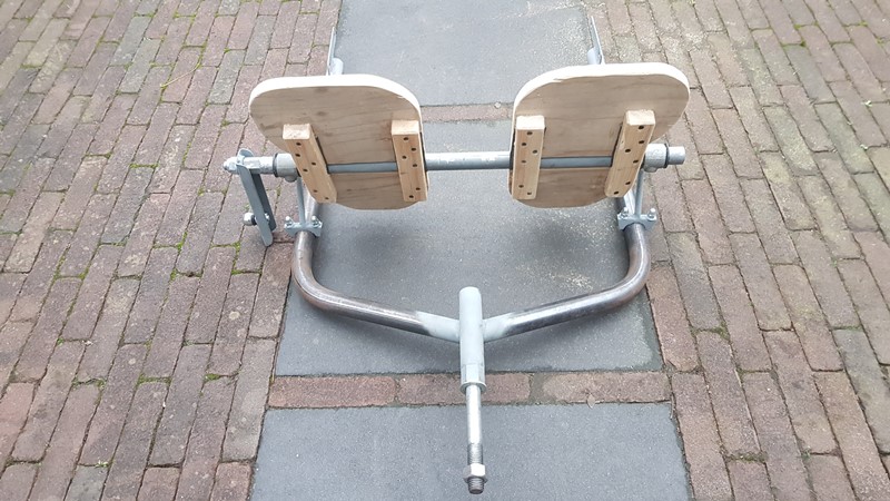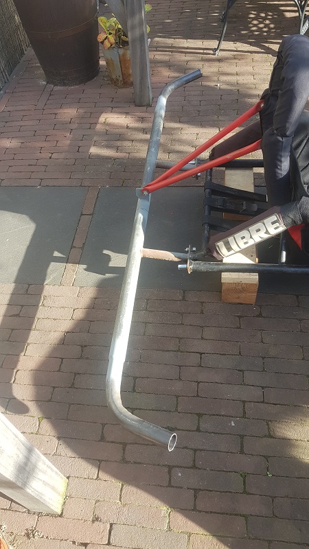 at both ends the axle (50mm) will be extendend with 1 size smaller (42mm) pipe wich will be bend in a 70 degrees angle inward.