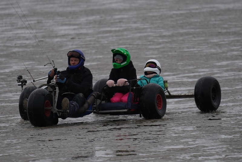 buggy with kite towing buggy-sideride with two kids ,10 and 6 years of age on-board and towed another buggy after that with kite..