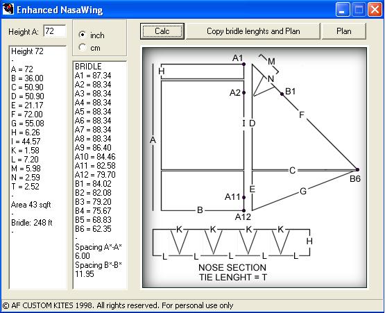 A quick look at the results shows the dimensions and bridles are about the same as the other calculators I've seen, including Tom White's. There are