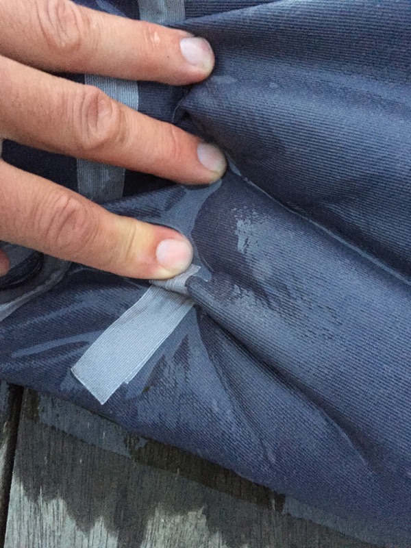 In the beginning I thought it was sweat but it started to become more and more... I turned the suit inside out. Closed all the seals and filled it with water. You could just see the puddles of water forming. If you pressed on the suit .. water formed.