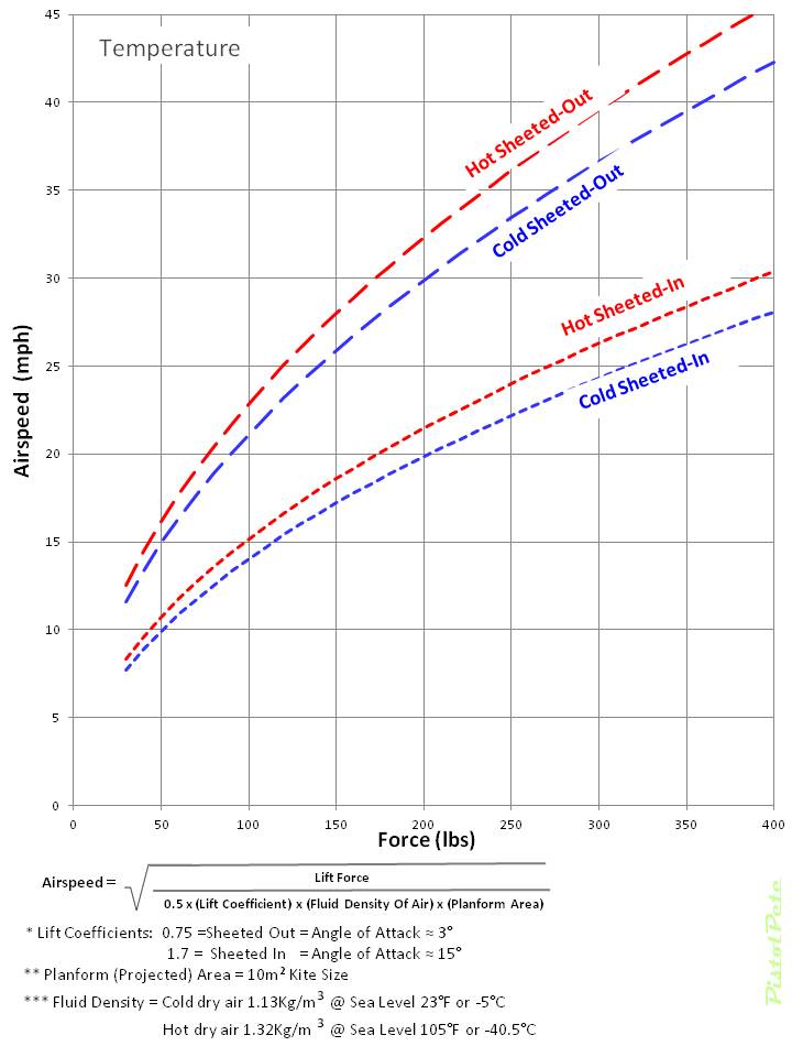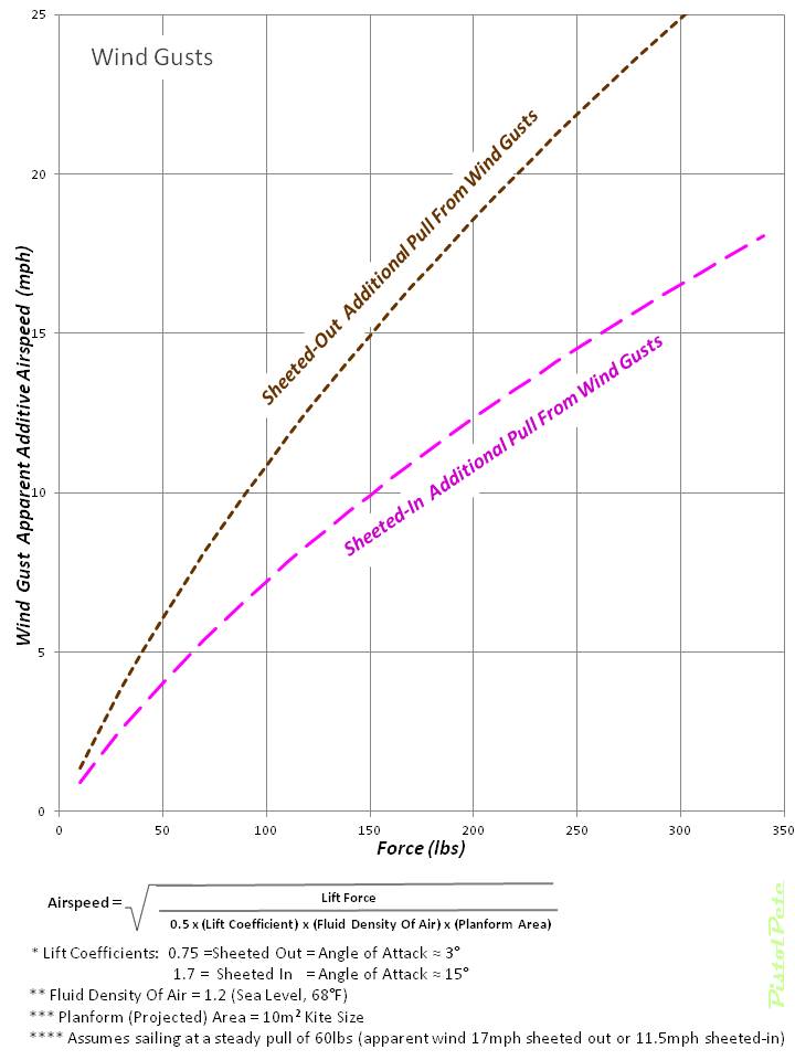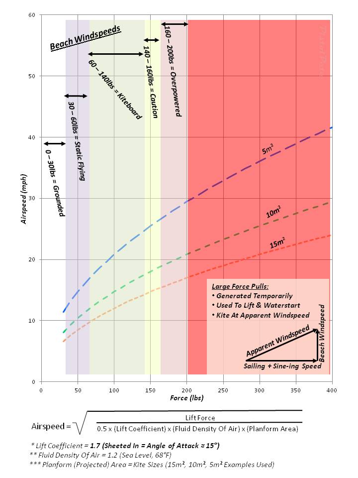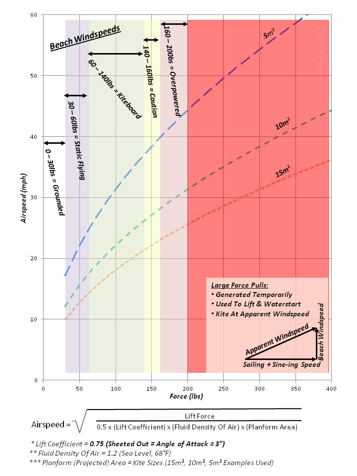 could provide. Many other pro/con variables influence actual airspeed-vs-force curves. Kite shape, rigidity, weight, line lengths, etc… are ignored