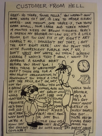 in the shop was this clipping out of a magazine, "The Customer from Hell".