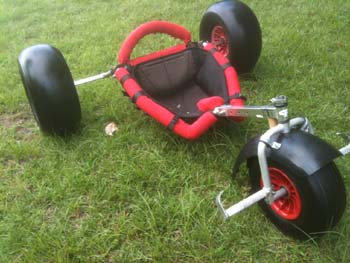 KT3 Aluminum buggy, hybrid with big foots on the rear, wide smoothy on the front. adjustable back rest with neck mid-back and lumbar support, Peter Lynn Comp Xl seat, 4" padding with new covers on the rails, new wheel bearings & front fender. The whole set up.