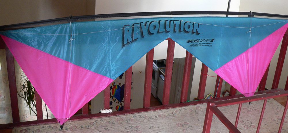 Revolution I - 108"x36" classic Rev kite (noticeably larger than usual Rev 1.5), slower pace than Shockwave with all the beauty of large rev flying,