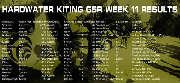 Week 11 HARDWATER KITING Global Speed Ranking.