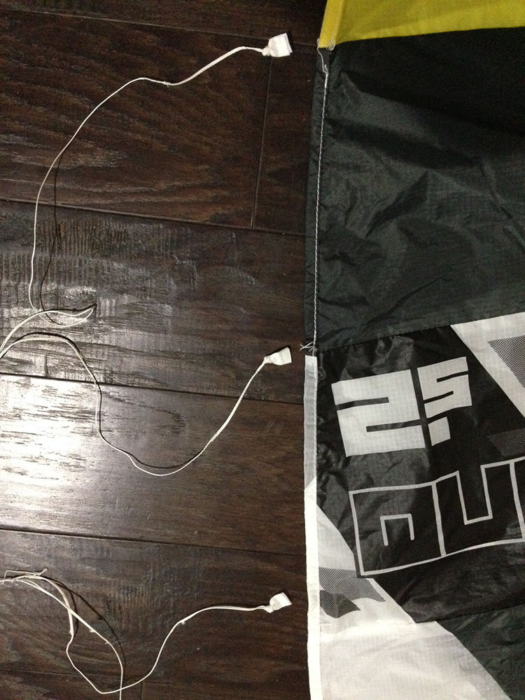 I was just going over the kite again before contacting ozone and found that three of the brake lines detached from the kite, on that same side.