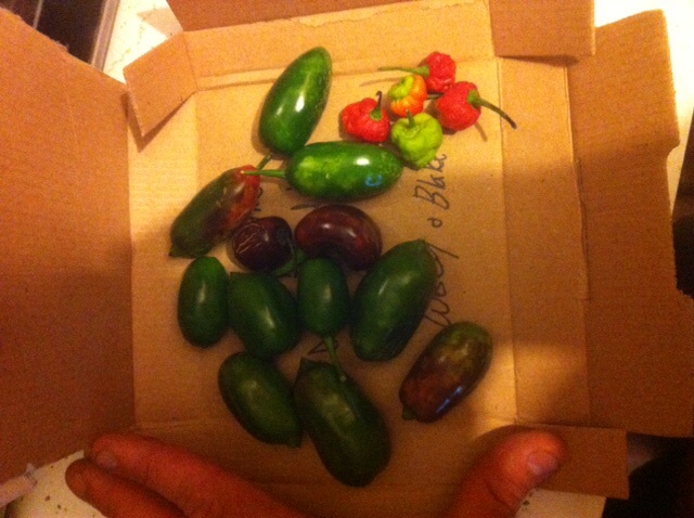 I bought a couple of plants while I was in Texas and left them with a friend. Anyways here is the resulting peppers.