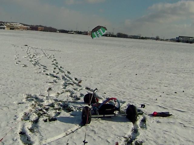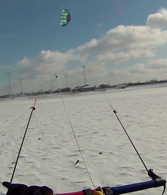 might have helped. I could have stepped up kite size but the 2.5 was frightening enough in the gusts. It's negative wind chill and by myself so I