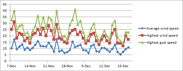 The best non gusty winds we get around here are west winds 10 to 15 mph