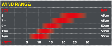 Flexifoil: 1.7m Sting, 4.9m Blade 3, 9m Blade 2.