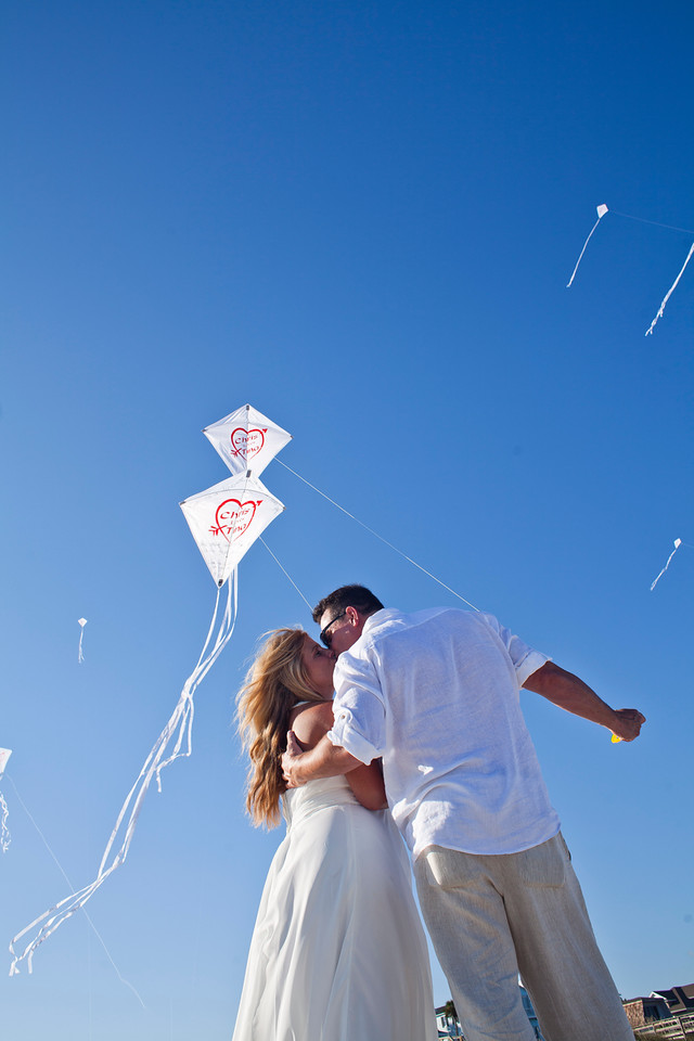 I had 25 of these kites made and everyone at the (small) wedding flew one. It was really cool, we gave a few extra out to random people on the beach and that was really fun watching strangers smile and have fun with us all like little kids.