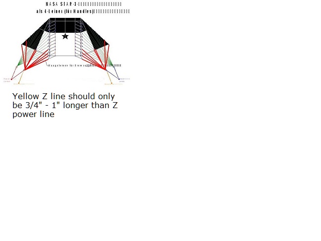 The Yellow brake line in the Z bridle should only be 1 inch longer than the Z bridle power line. I also used 2 more line for the brakes that's