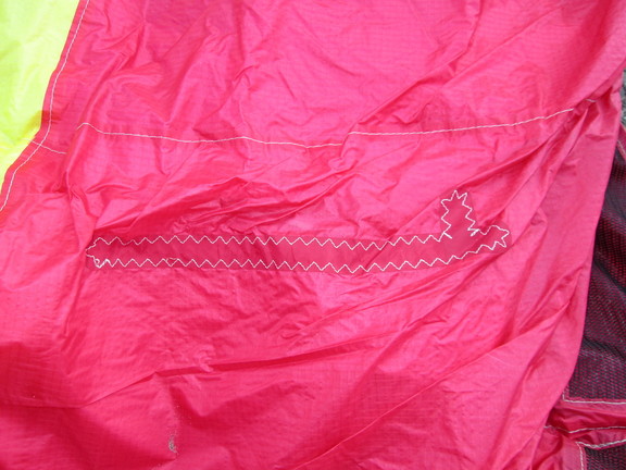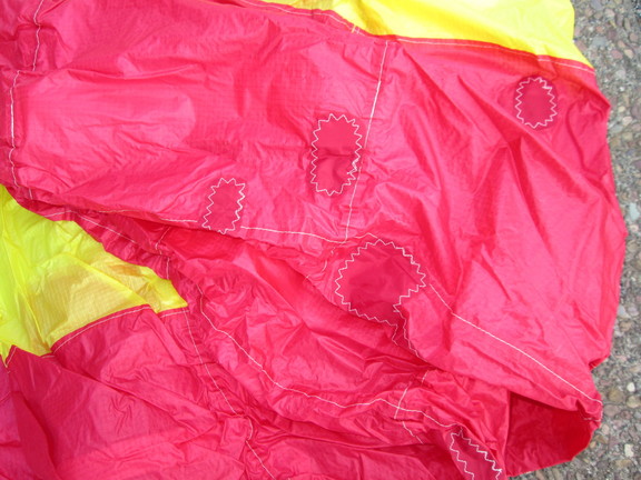 Theres No pin holes that I've seen on the kite. Only those repairs that I showed in the pictures. They are very well done sew jobs and the fabric of