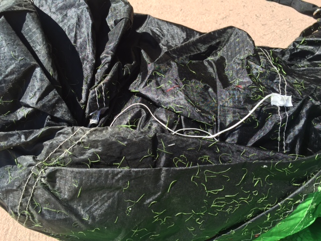 As I was wrapping up my kite (in this case a green and black Flysurfer 12M Peak2) and found to my dismay that it was coated with an amazing amount of