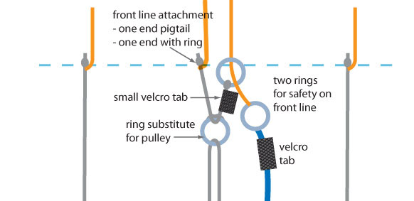 line attachment to create a flagging connection and still use it for other kites. attached is a ring to ring system we used making up bars with a