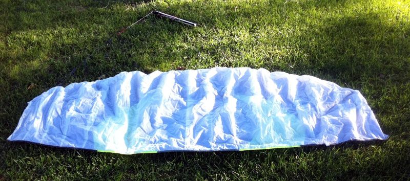 Price lowered to $125 shipped anywhere in the US. Kite is still crisp and in good shape other than pinhole. Comes with kite, lines, bar, and carry bag