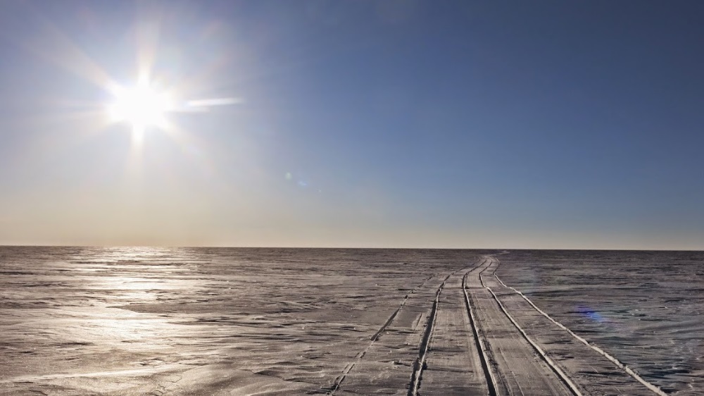 (hey, it's snow Chris not ice) and about 16 hours of daylight and you're looking at about 500 miles a day. Of course even Superman needs to stop to