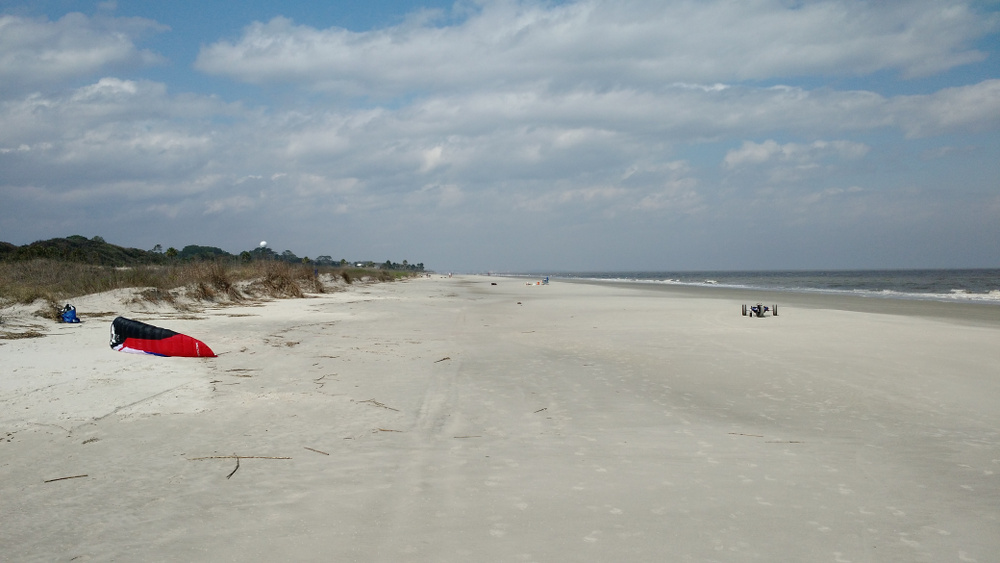 East wind 11-13 kts - three hours of post-church buggy time- until tide took back the beach.