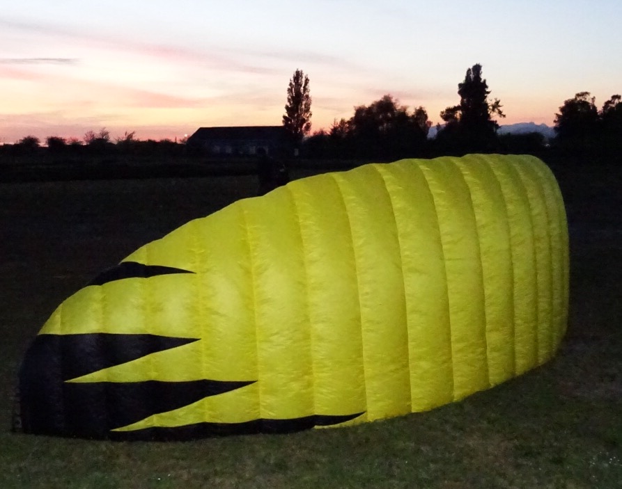 Today a kiter pitched up with a new Pansh Aurora 8m plastic pulley version with bar and lines.