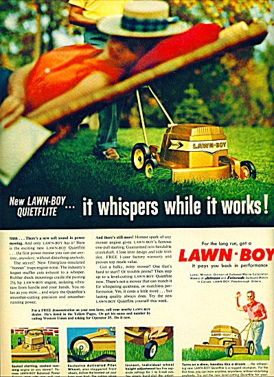 About 1959 my dad helped me buy a Lawn Boy "Quite Flite". I had to pay him back with my lawn mowing business earnings.