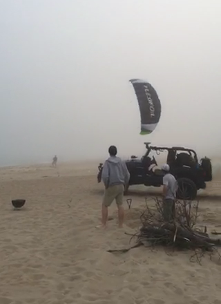 It was interesting flying the kite in the fog. The winds were maybe 10-12 MPH, and once the fog rolled in, the kite became very sluggish and 'heavy'