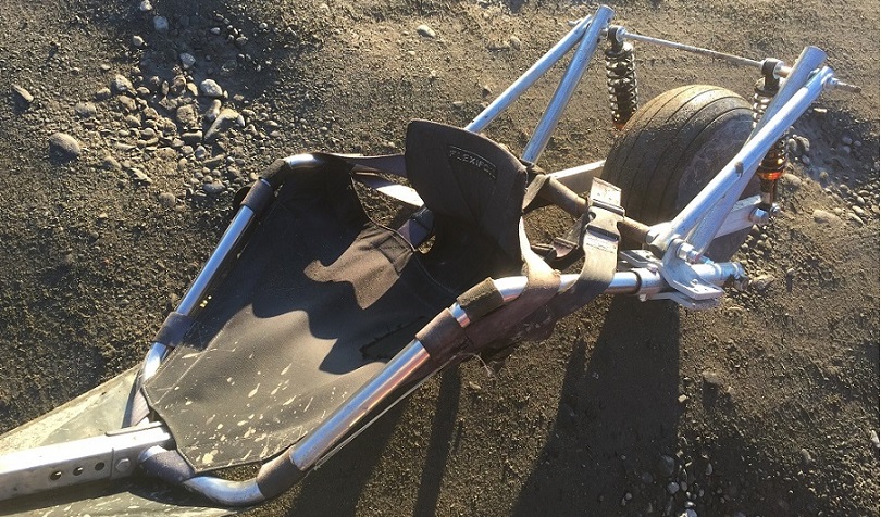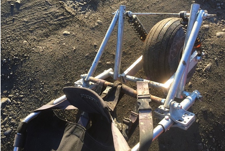 practicality. I have a flexifoil buggy, a Sesna wheel and some hardware, so I went to work. Made a crude trial run at it while I was waiting for the