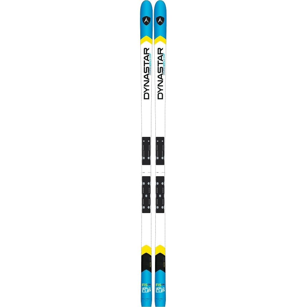 These are the real deal, Dynastar Speed DH FIS World Cup WC downhill race skis. They are long (218cm), stiff, and straight (>50m radius),