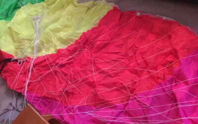 Here's a Peel 8m. It has much string to help it fly. I want to help too, however the elastic bands are secured by knots especially engineered to