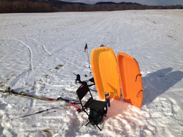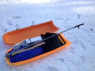 here's the sled I put together when I discovered how much stuff I like to take on the ice. the hinge and pole attachments are rubber from the inside