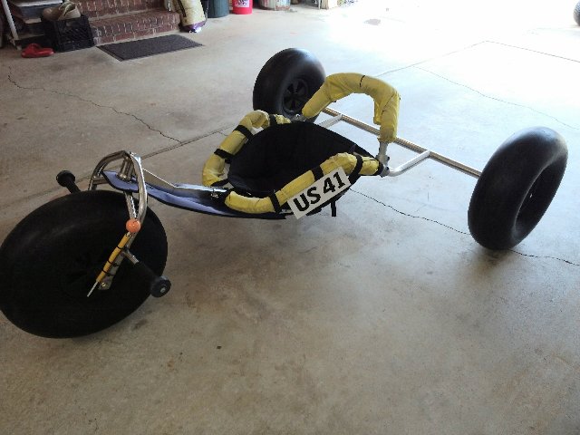 Check "My Kiting Pics" link below to see the buggy. Yellow side rails. Not quite as clean and shiny now though but it's in good shape.