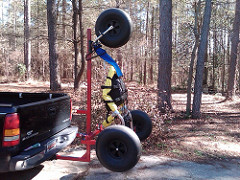 Made of 2" square steel tubing, will hold 2 buggies. I'll bring it to JIBE. Got surface rust, but still very solid. Has safety chain and pins to hold