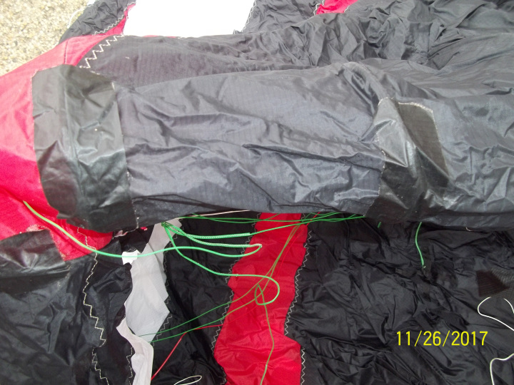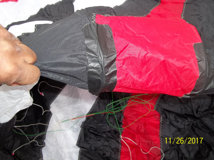 however I noticed some wear on the fabric over the plastic battons on the leading edge and I put some ripstop tape to strengthen it.See last 2 pics .