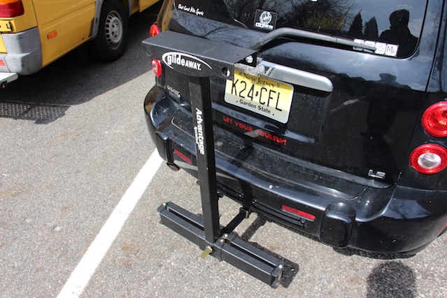 awesome that it glided away so I could use my tailgate . For longer trips I probably would remove front fork .
