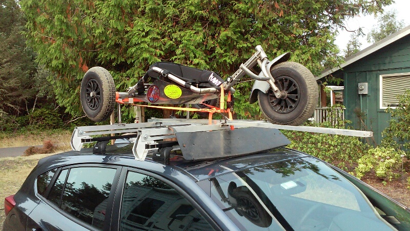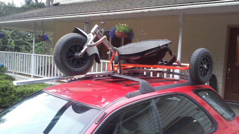 Here are the two racks that I had on my past two cars. The red Subaru had horizontal bars that I adapted to. When you loaded the buggy you had to
