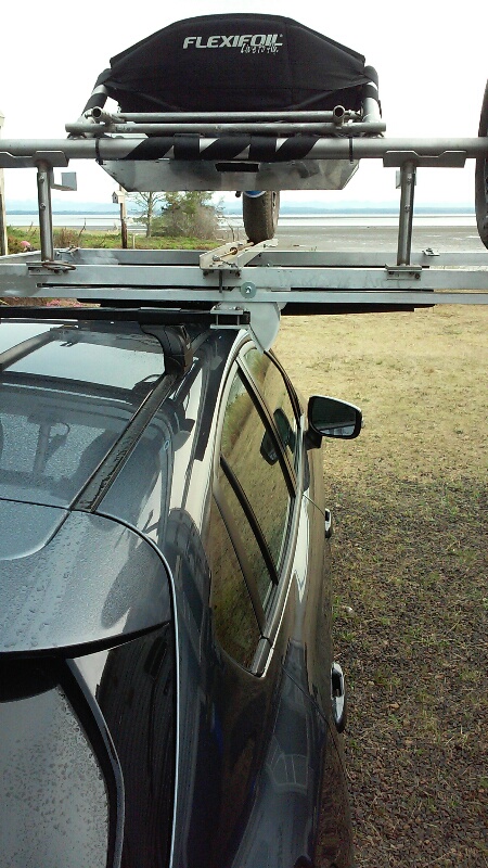 Then we got the newer grey Subaru. It had a simular rack adapted to a old square bar Thule system. Again, reaching in I put many small dents in the