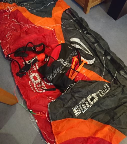 » Ozone Flow 3m land kite with 4 line handles, bag, manuals, stakes.