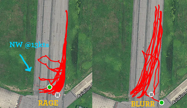 able to get upwind on the Rage when I was lifted in a thermal. I was also moving 10mph faster on the Blurr in the same wind, and holding myself back.