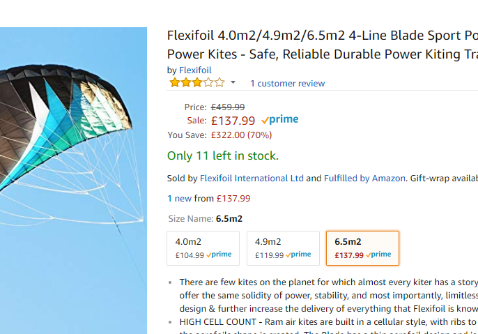This seemed to good to be true so I ordered a 4M Blade. I've got a 5M Beamer and thought this would be a good chance to try a high aspect kite.