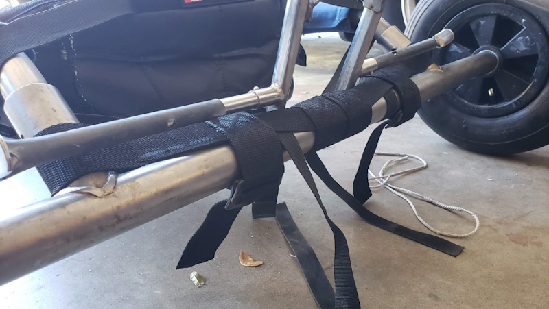 of front buggy so it butts up to the centre of the axle. Wrap one half of the long webbing around the back axle from the top down and the other the