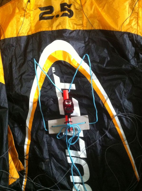 takes about a minute to tie it in, 30 seconds to undo it and move it to another kite to start the mounting process over again.